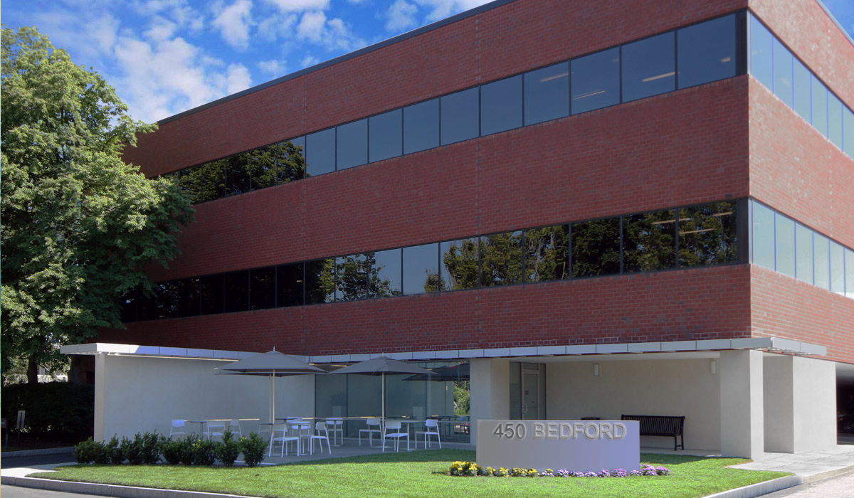 Such was the case with the exterior entrance and lobby of 450 Bedford, a 3-story office building in Lexington, Massachusetts. Built in 1982, 450 Bedford had reached the point of needing an entry area refresh. The outside entrance so greatly lacked prominence and definition that visitors often passed by the main door. Inside, the lobby needed a total update including new floors, walls, fixtures, and lighting.