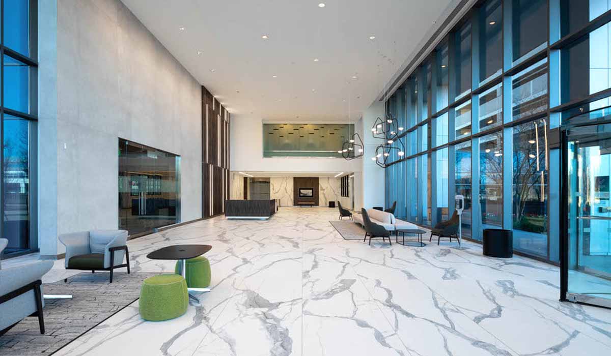 Laminam by Crossville porcelain tile panels proved to be an excellent choice for Energy Center II and is serving as inspiration for other projects. The design team has received many inquiries from others looking for a flooring solution to update older buildings without the hassles of demolition.