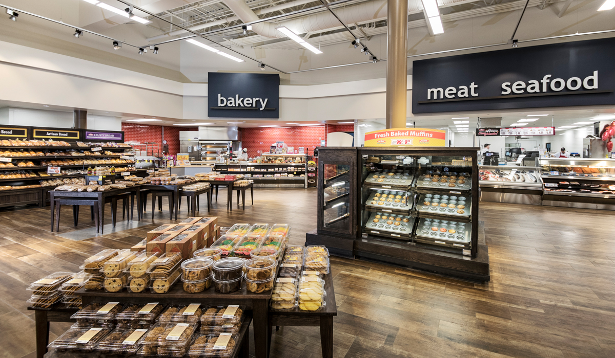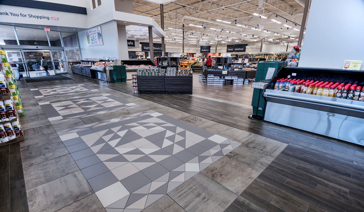 For the produce, meat, and bakery areas, the Schumacher team specified SpeakEasy planks in Bank Roll, Zoot Suit, and Sweet Georgia Brown. SpeakEasy offers the beautiful look of timeworn hardwood in long-wearing porcelain stone—an attractive and durable solution to designate these unique areas of the store.