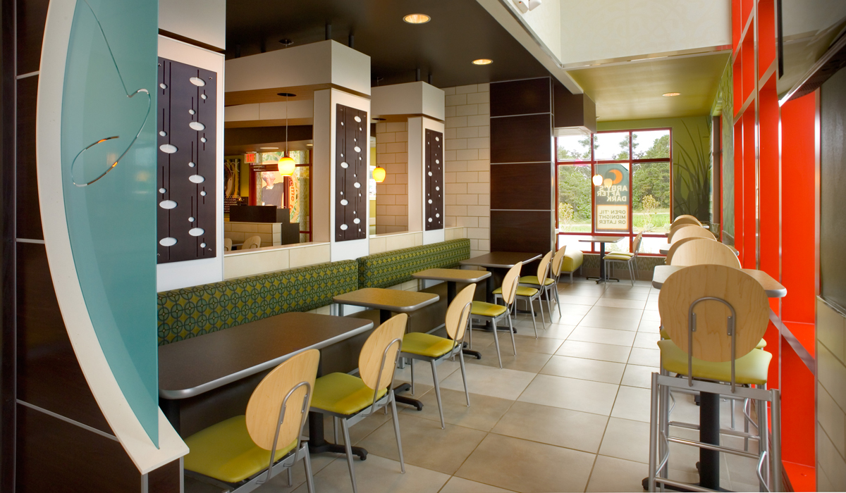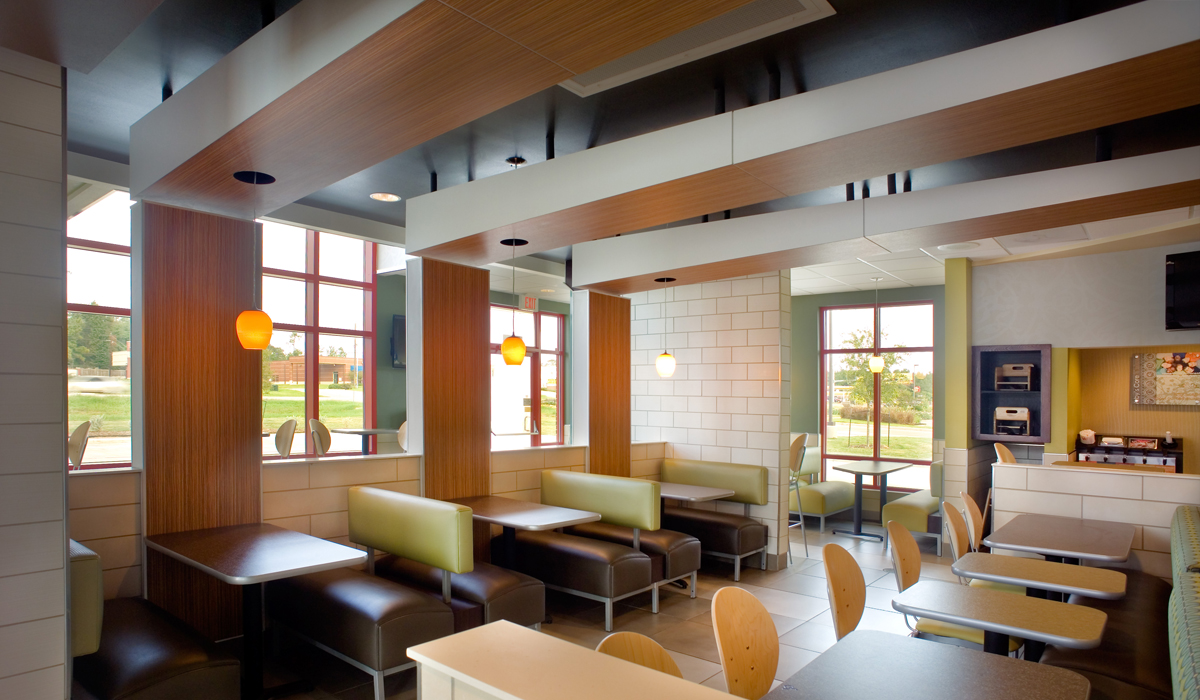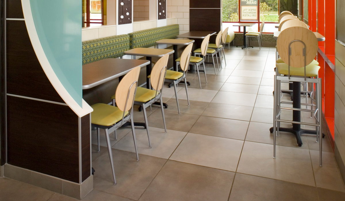 For this landmark Arby’s, the project team chose materials that supported the fresh, modern design scheme of the building’s interior, in addition to adhering to LEED requirements regarding recycled content, regional proximity to the location (for efficiencies in transportation) and so on. Crossville tile was an excellent choice in terms of design appeal and sustainability, and a range of Crossville products are used prominently throughout the facility, including the ordering and dining areas.