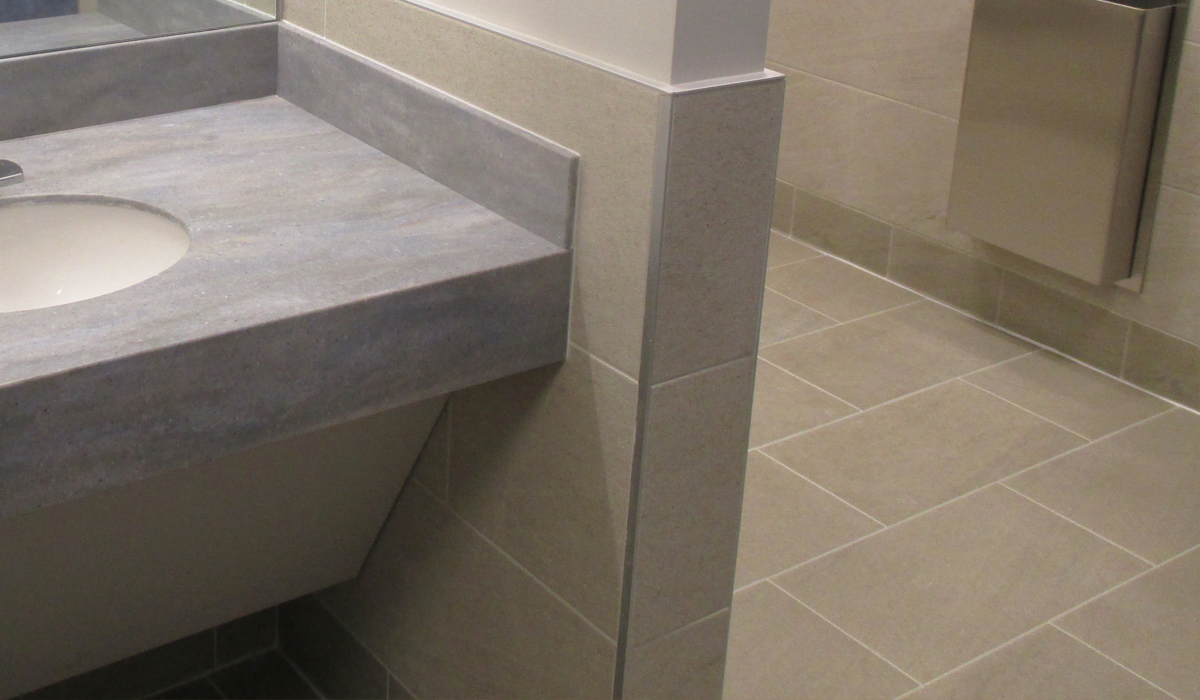 In the crew restroom area, the design team chose Crossville’s Basalt collection, known for great strength and durability, as well as its appealing style. In the Caldera and Silica shades, the tiles’ fine graining with a hint of crystalline sparkle provides the neutral, earthen shades to complement the overall design scheme. The enduring porcelain tile surface offers the easy maintenance the facility needs for the high traffic, busy area.