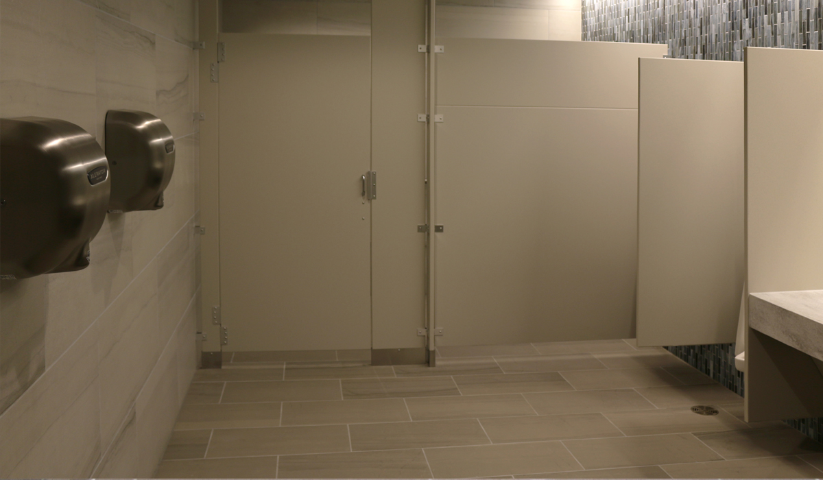 Crossville’s Moonstruck collection in the conference area restrooms offers a sandstone-textured appearance. The team specified the Luna colorway in 18” x 36” tiles for the walls, creating a subtle elegance with the tiles’ generous proportions and landscape-inspired hues. For the floors, Moonstruck’s Gemini color in 12” x 24” size format provides a gentle contrast to the walls and gives the space visual interest. From the large size tiles on the walls to the rich color scheme throughout, the conference area restrooms achieved a hospitality feel for the first responders attending training sessions.