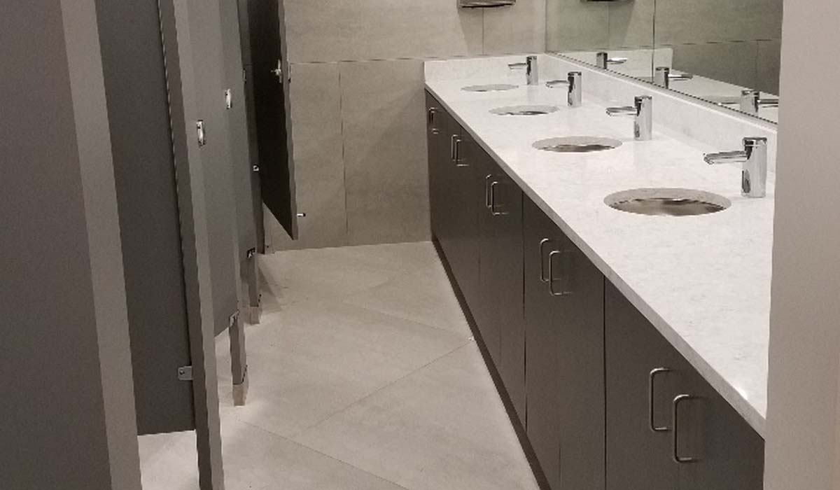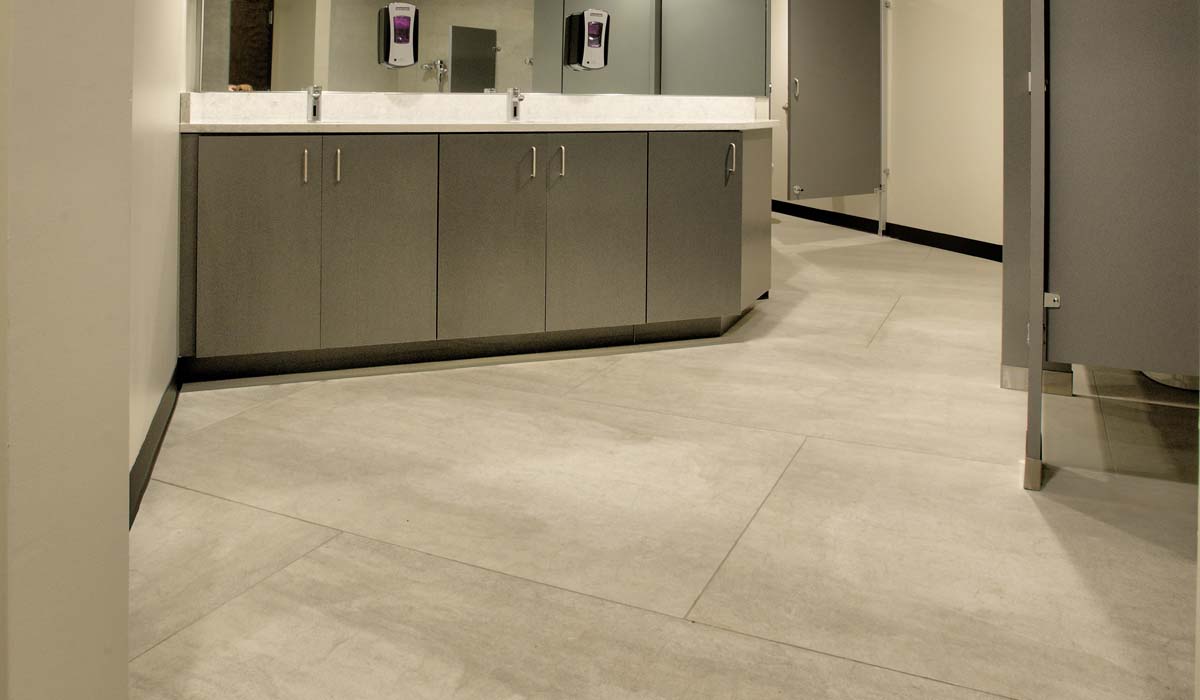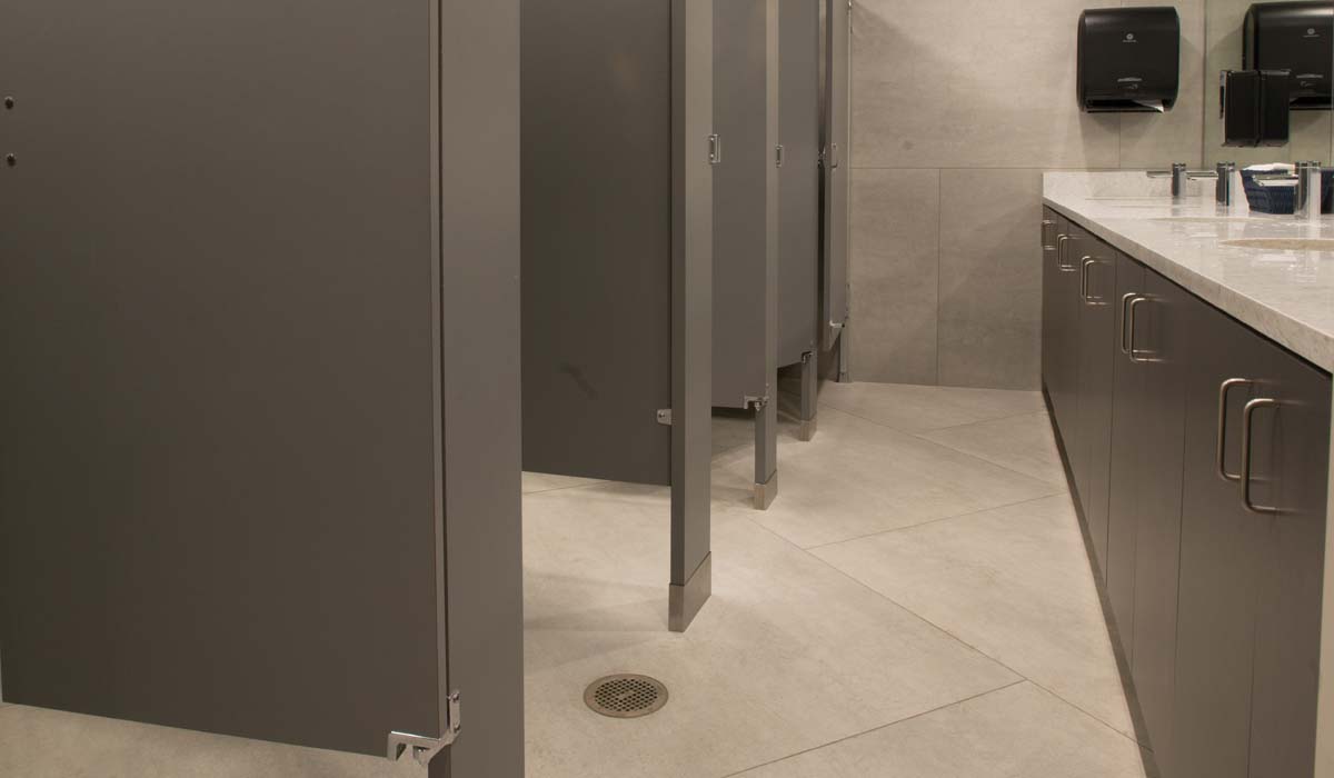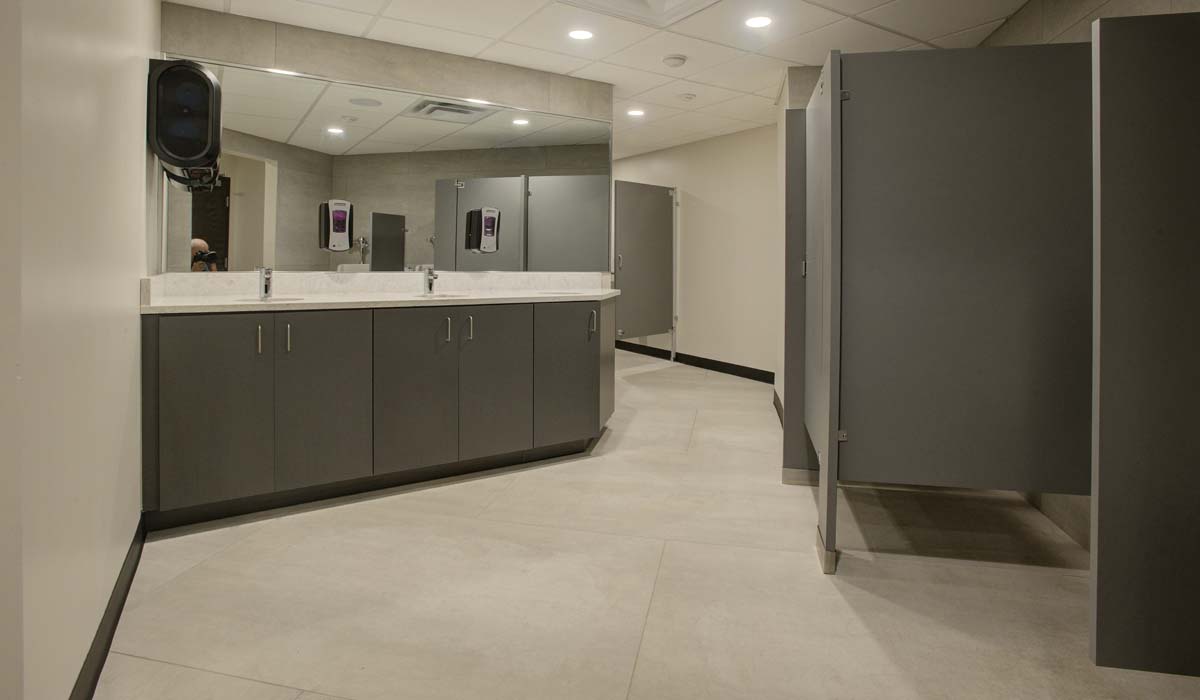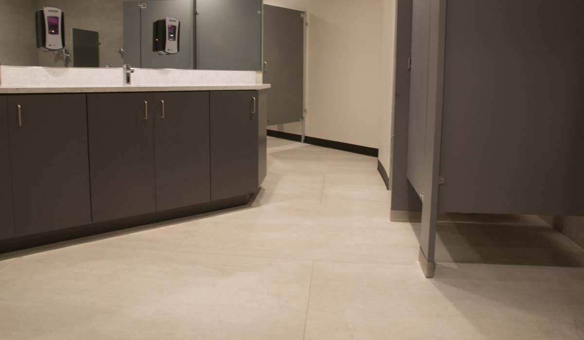 Designers selected Crossville’s I Naturali Pietra di Savoia in Perla for all the restroom walls and floors. The 45-degree angles in the floor plan in portions of the restrooms, along with the relatively large format panel size, posed somewhat of a challenge for the installer. However, the challenge was resolved by designing a tile pattern that could be more easily executed by cutting the panels into smaller sizes. The end result is a pattern that still makes the most of the tile panels’ generous outer dimensions, while capturing an aesthetically “clean,” monolithic appearance. The innovative tile installation provided a modern update with appeal—and performance—that is sure to last for years to come.