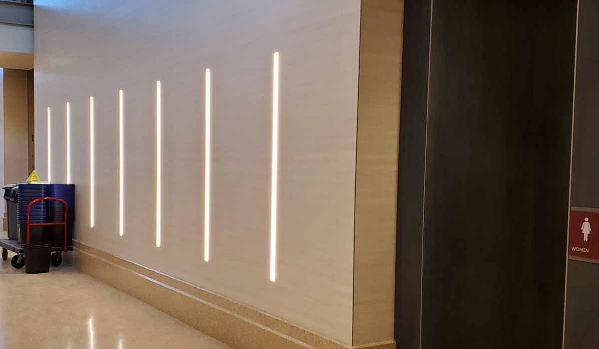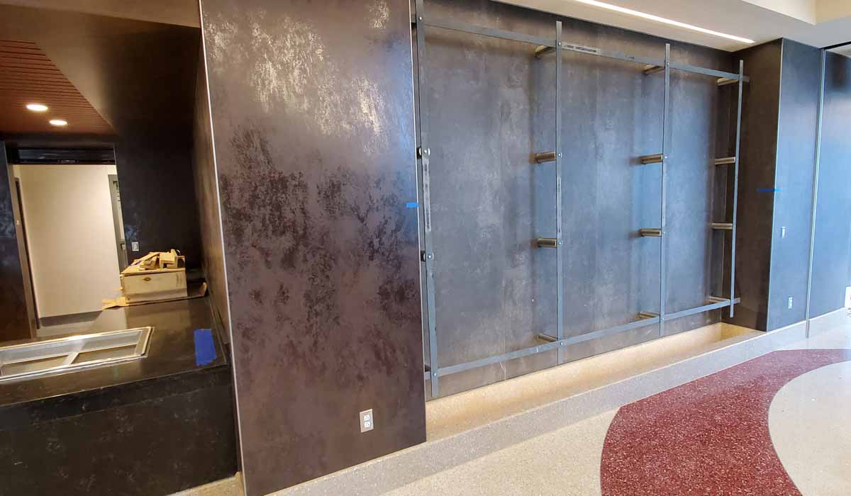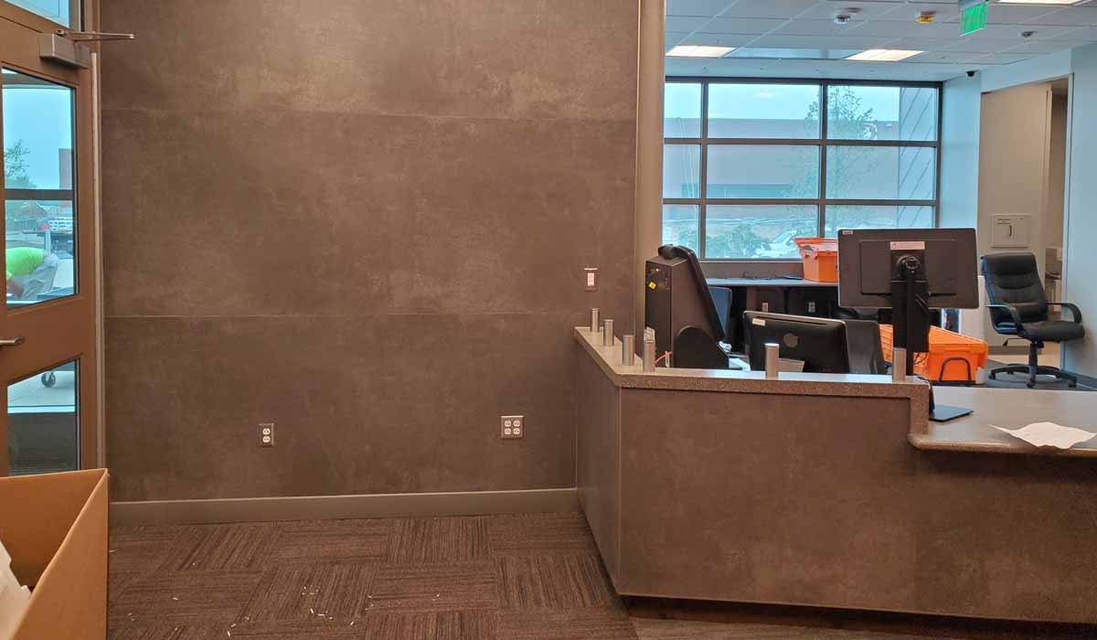 The light weight of the Crossville porcelain tile panels made the installation a smooth process for the installers working on a scissor lift. When the installation team faced questions about material cutting, the Crossville Technical Department was readily available and assisted in order to guide the team through any application issues.