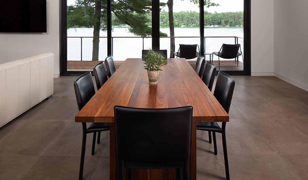 Located on the shores of the proglacial Chain O'Lakes in Waupaca, Wisconsin, this weekend and vacation home was in need of reinvention and renovation. Wanting a monolithic concrete surface throughout the main floor, the team chose Crossville's Notorious Collection offering the beauty of concrete with the advantages of porcelain.