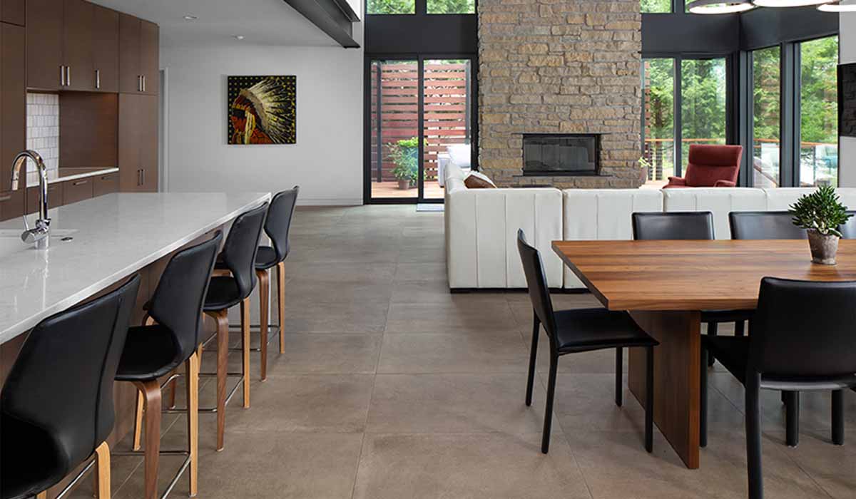 “The Notorious porcelain tile transfers the heat evenly and efficiently. The large format and rectified profile installed throughout the main level well,” explained Stephen Bruns, owner of Bruns Architecture.
