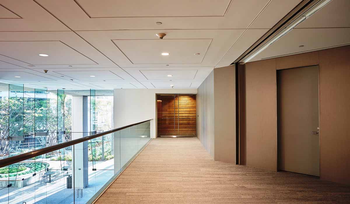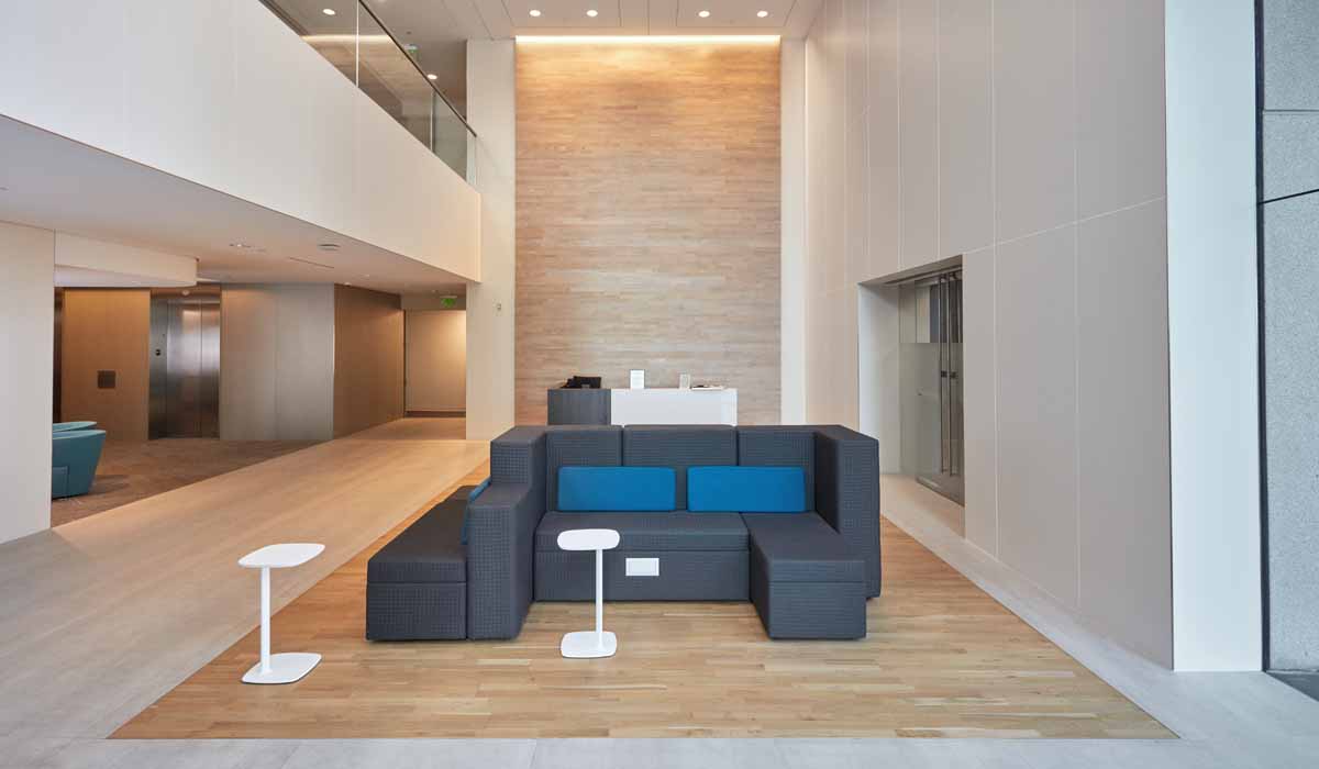 With expanding residential sectors and business growth, existing commercial properties recognized the need to update facilities to retain current tenants and attract new leases. The management team at Culver Pointe (400/600 Corporate Pointe) wanted to transform the 450,000 square foot space of two buildings and expand with a third creative space. Updating the 1980s pink granite in the existing buildings would need to coordinate with the newly built space. Additionally, the design team had to be creative in sourcing materials that could be installed over the existing surfacing to reduce demolition costs.
