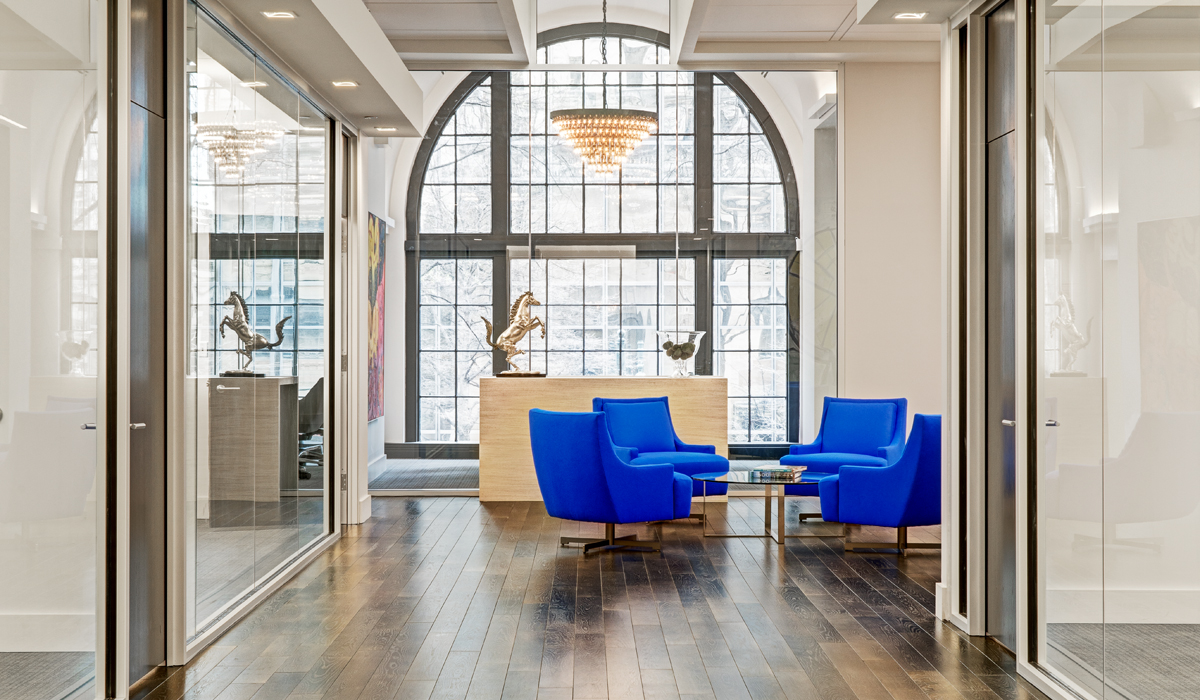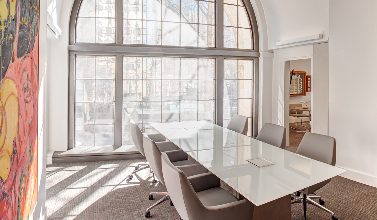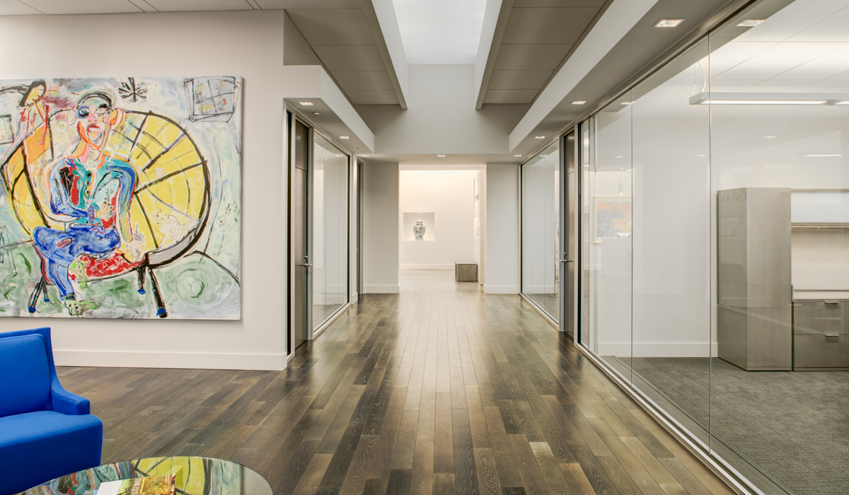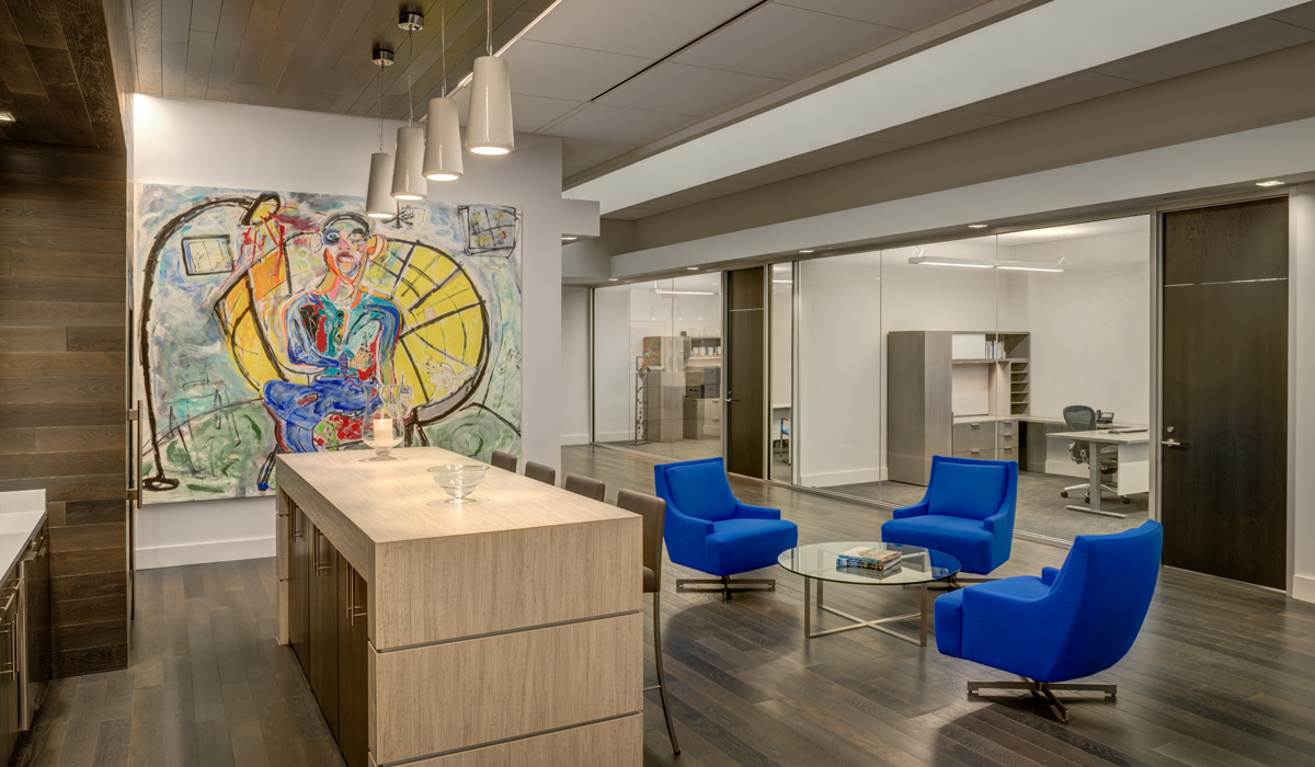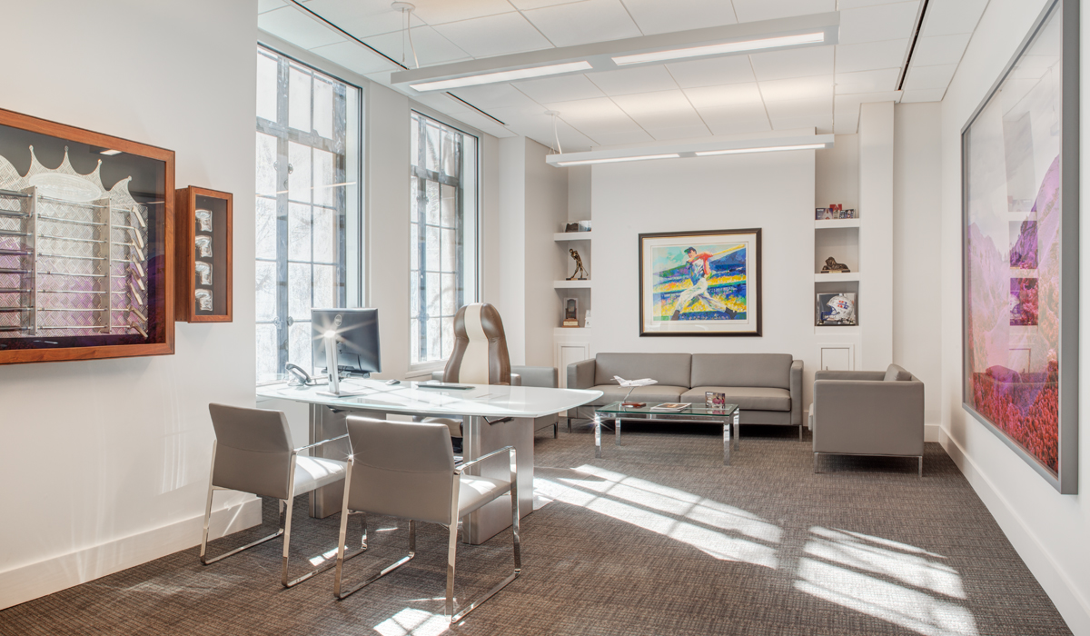 The firm is headquartered in one of Charlotte’s historic high-rise office buildings. When Jenkins + Peer Architects out of Charlotte, NC set out to create the space for their client in this notable building, they wanted to stay true to the building’s unique history by employing a design that embraced its renowned architectural elements, while also addressing the client’s focus on creating offices that help to attract and retain top talent in the competitive financial services field.