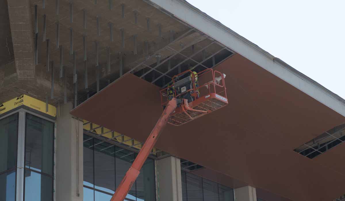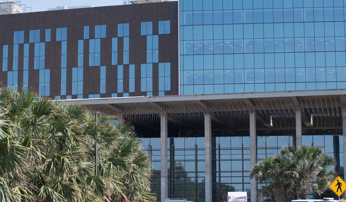 When considering cladding options for the exterior, the design team noted a few considerations and installation concerns, and ultimately chose Crossville Porcelain Tile Panels by Laminam. A major advantage of using the tile panels is the weight compared to other cladding options. At nearly 3’ x 10’ in outer dimensions with only 3mm thickness, these panels are light enough in weight to be handled by fewer workers. This is important to note for the Hidalgo County Courthouse because the porcelain tile panels cover nearly 52,000 square feet of the expansive exterior. If the architects had specified natural stone, the project team would have faced more time-consuming challenges and safety issues.