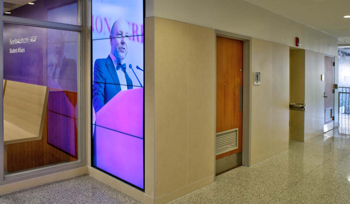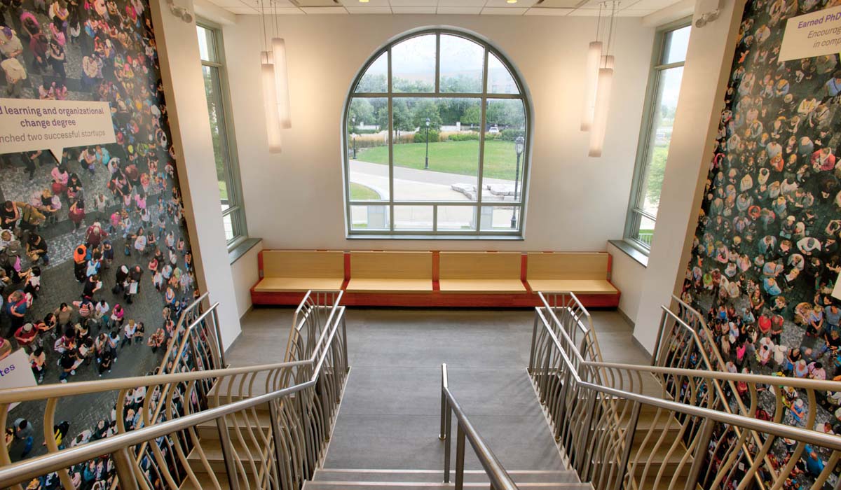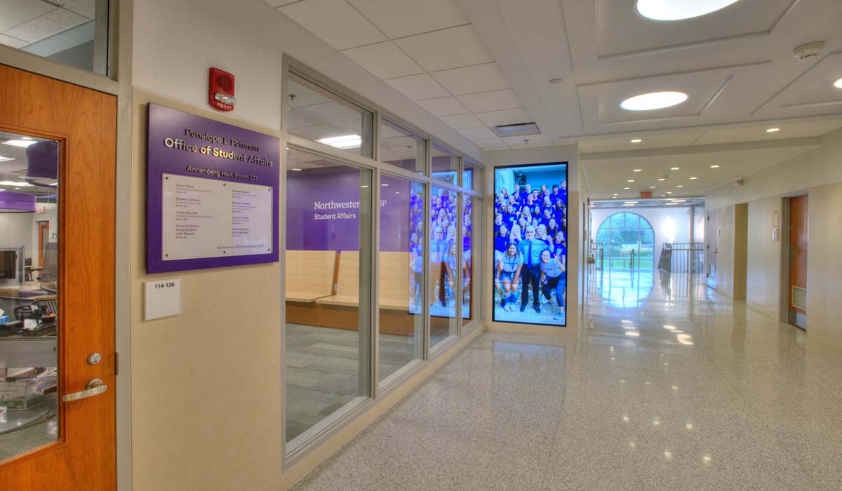 Among Northwestern’s 12 distinguished schools and colleges, the School of Education and Social Policy is housed in Walter Annenberg Hall, a unique building added to the Evanston campus in 1994. The structure was strategically clad in limestone and precast concrete panels so that its exterior features would serve as a transition from the Gothic design of some adjacent buildings to the modern design of others.