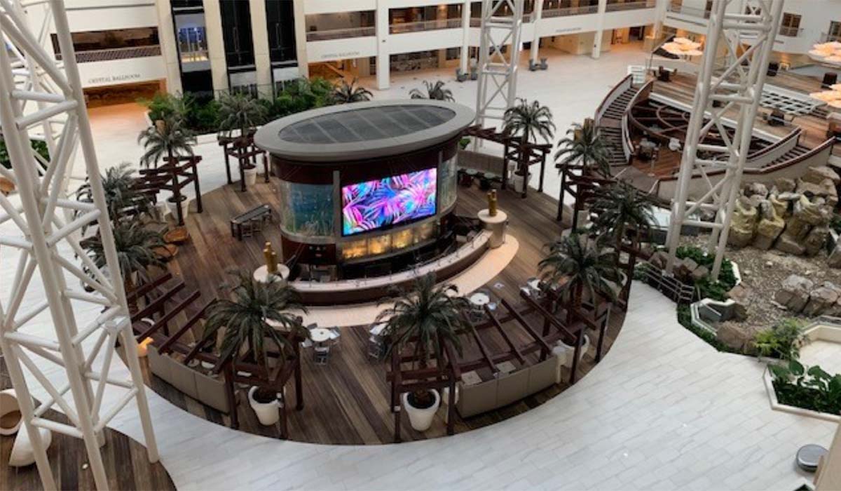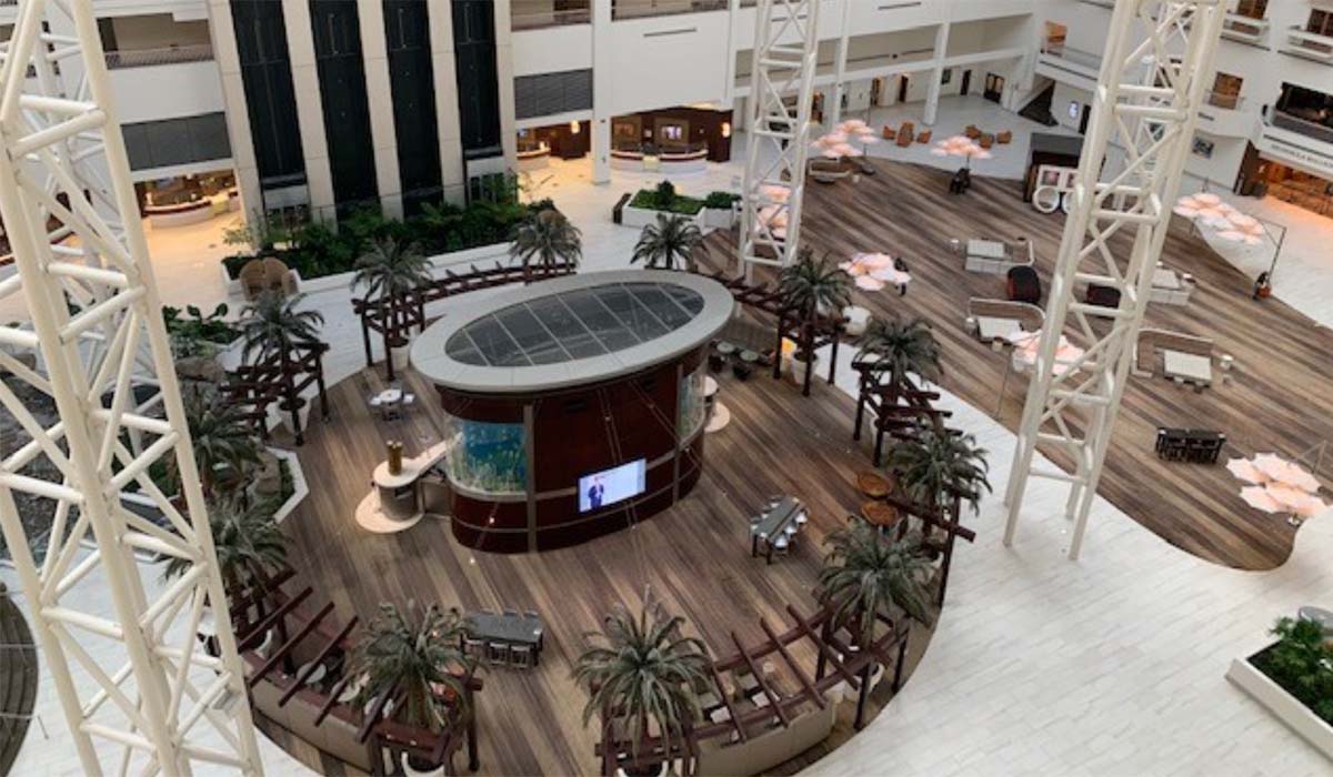 The Renaissance Orlando at SeaWorld is excellent example of just how nimble hoteliers must be to stay at the top of their games and first on travelers’ preferred accommodations lists. Although the hotel completed a $35+ million renovation in 2011, the facility’s 10-story atrium lobby floor was in need of a refresh in less than a decade after the previous remodel.