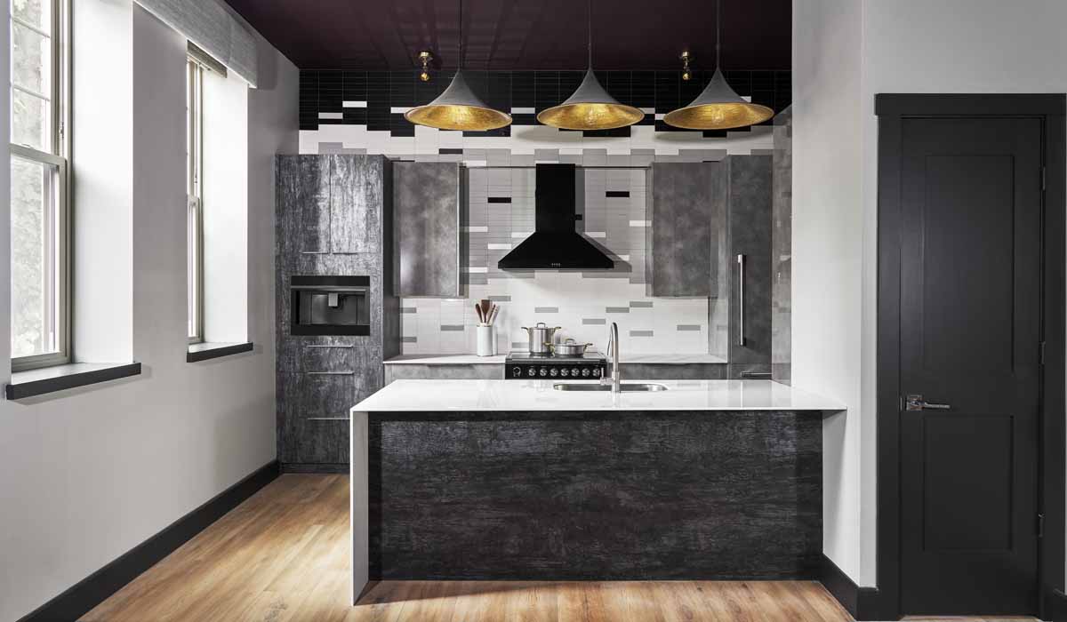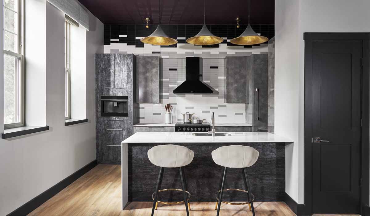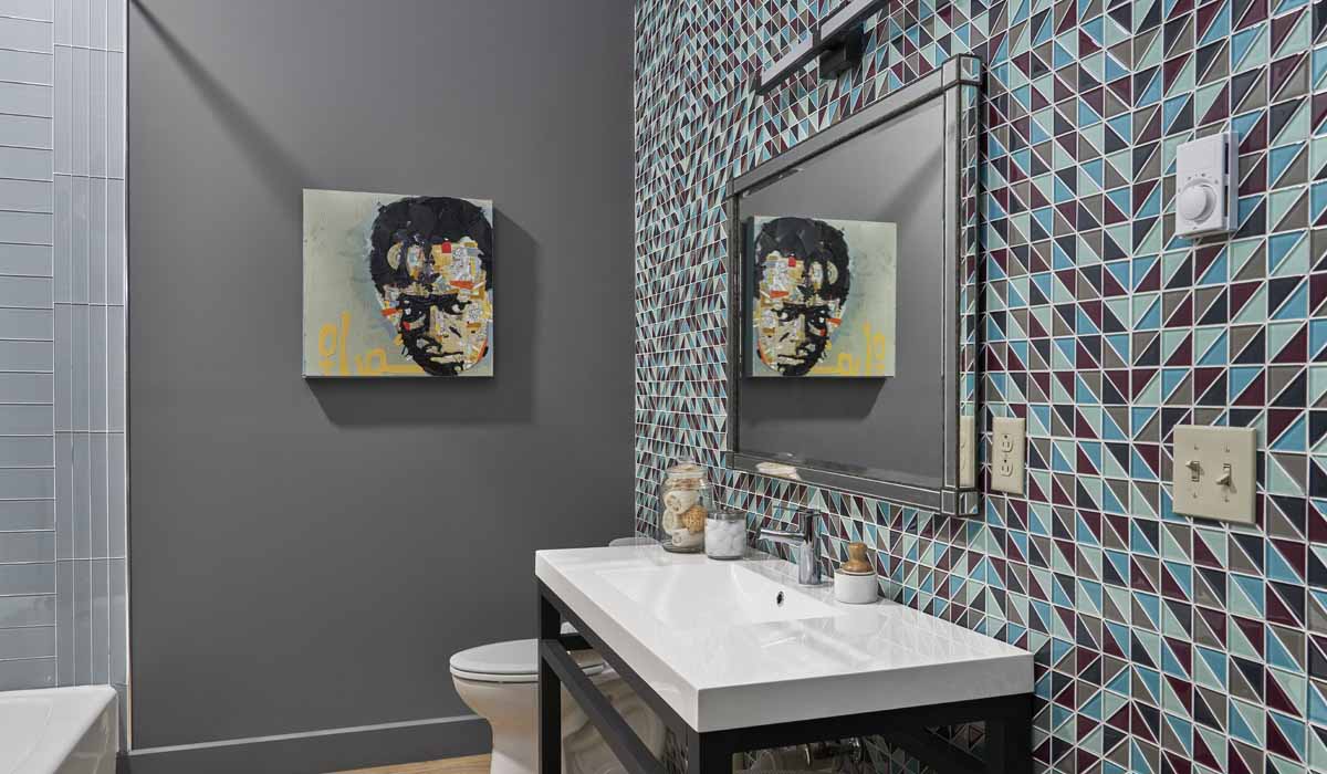 The Austin Gray Design Group worked with Crossville in selecting a beautiful blend of products for Apartment A for the kitchen and bathroom. Known for eclectic interior spaces that evoke emotion, the collaborative team of black women designers created an artist’s living space.