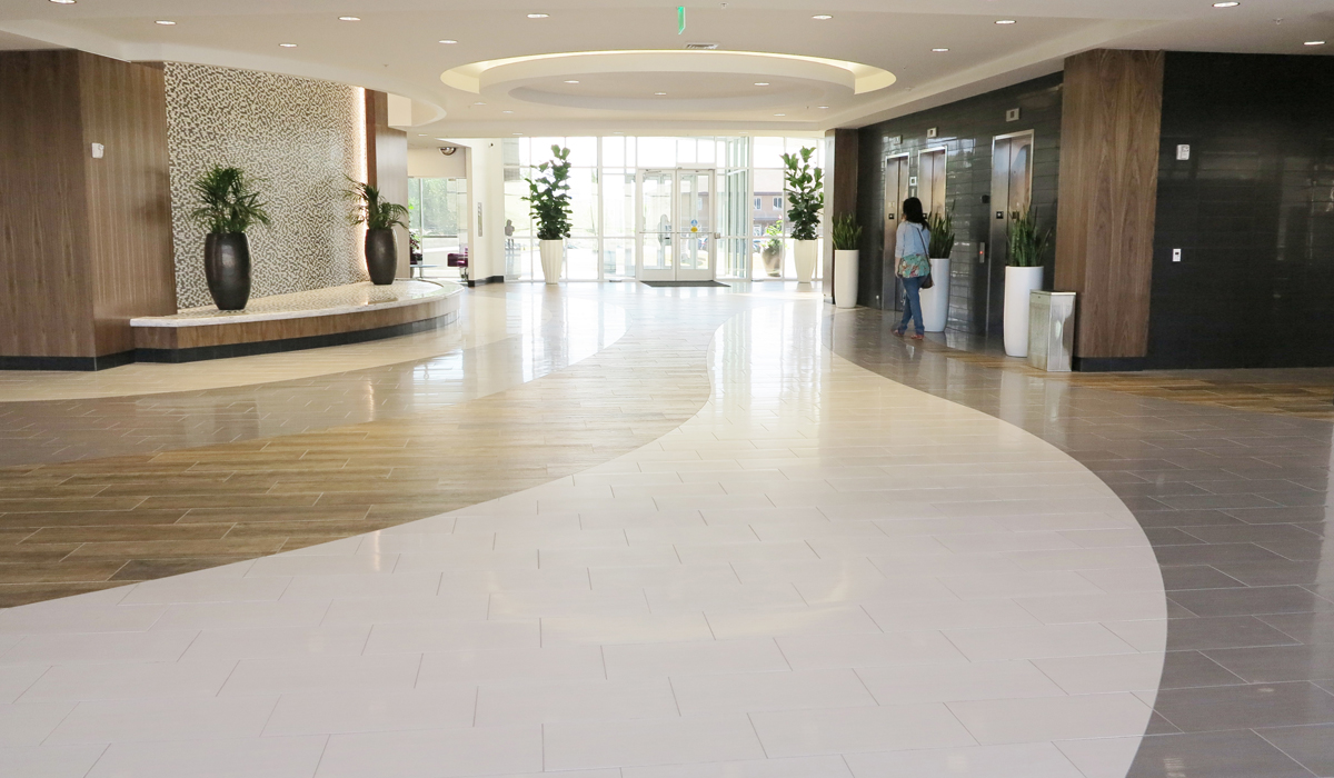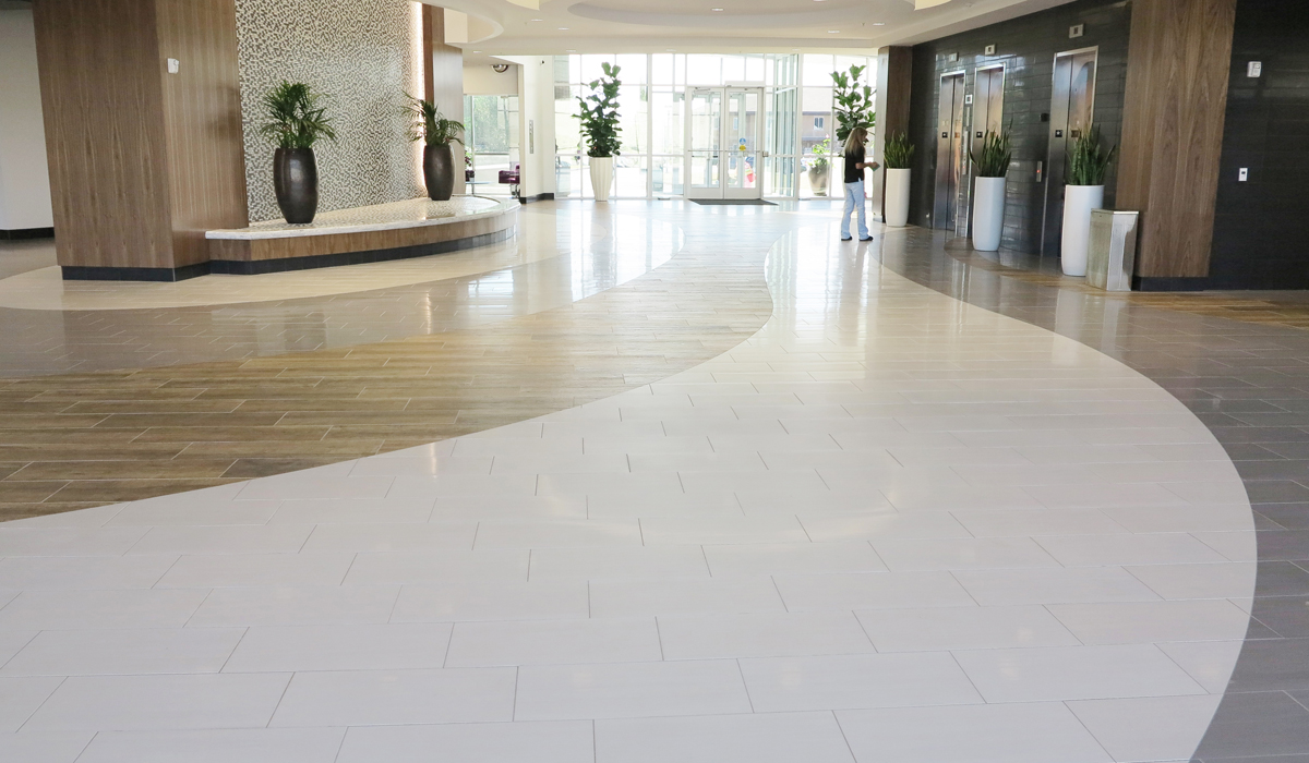 To achieve the design vision and meet required timing, Black turned to a trusted, creative solution. She specified 23,000 square feet of Crossville tile.