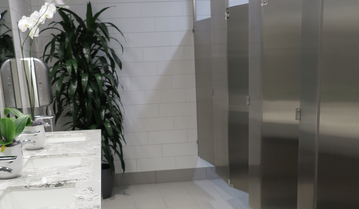 To help define transitions between spaces throughout the facility and add visual interest, the project team incorporated waterjet cuts. “This really made the tile installation special and purposeful within context of the entire interior space,” shares Rod Katwyk of 3D Tile and Stone, the company that managed the waterjet cutting and was alongside for the installation process.