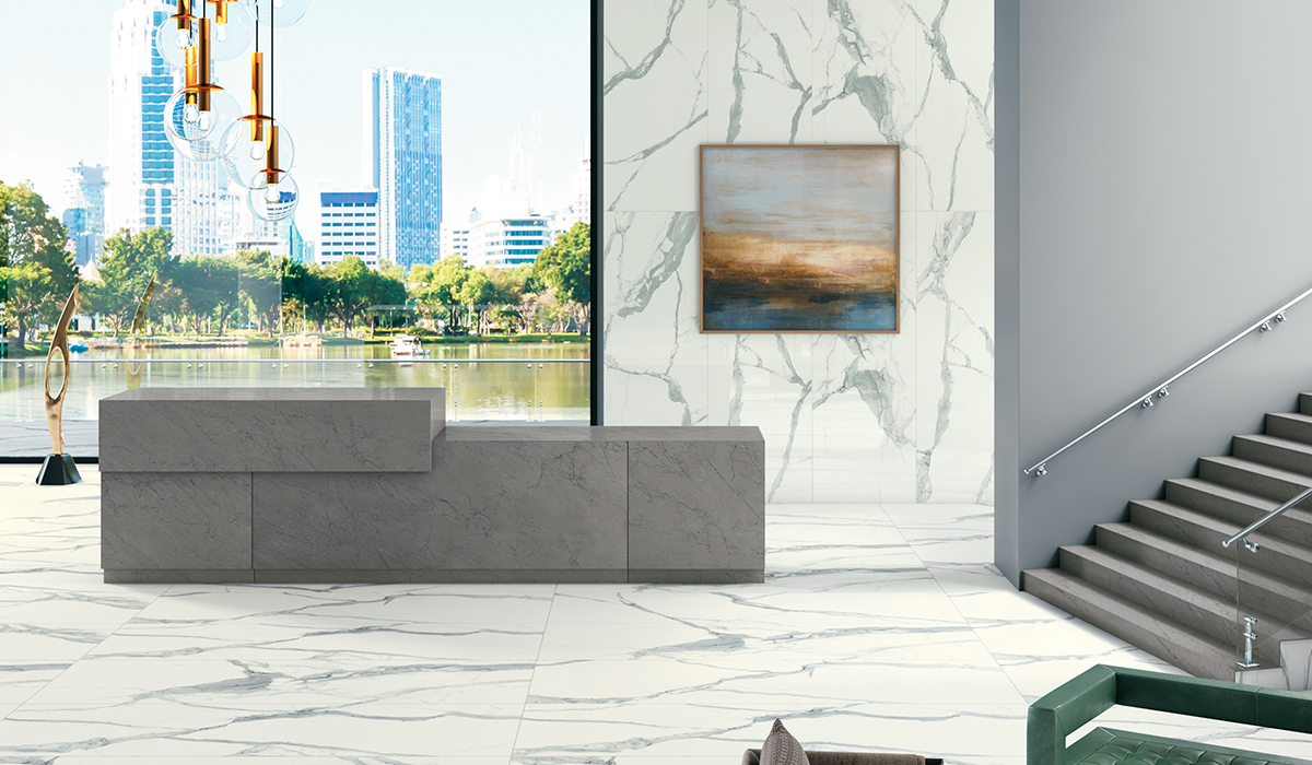 Maximum freedom of expression and unexplored possibilities in interior design create a unique collection, which enhances the formal elegance of stone in large dimensions, with reduced thickness, easy handling and speedy application. Made by Laminam SpA. *Items with a 5.6 thickness are additionally applicable in the following areas: interior floors dry and pool fountain waterline.