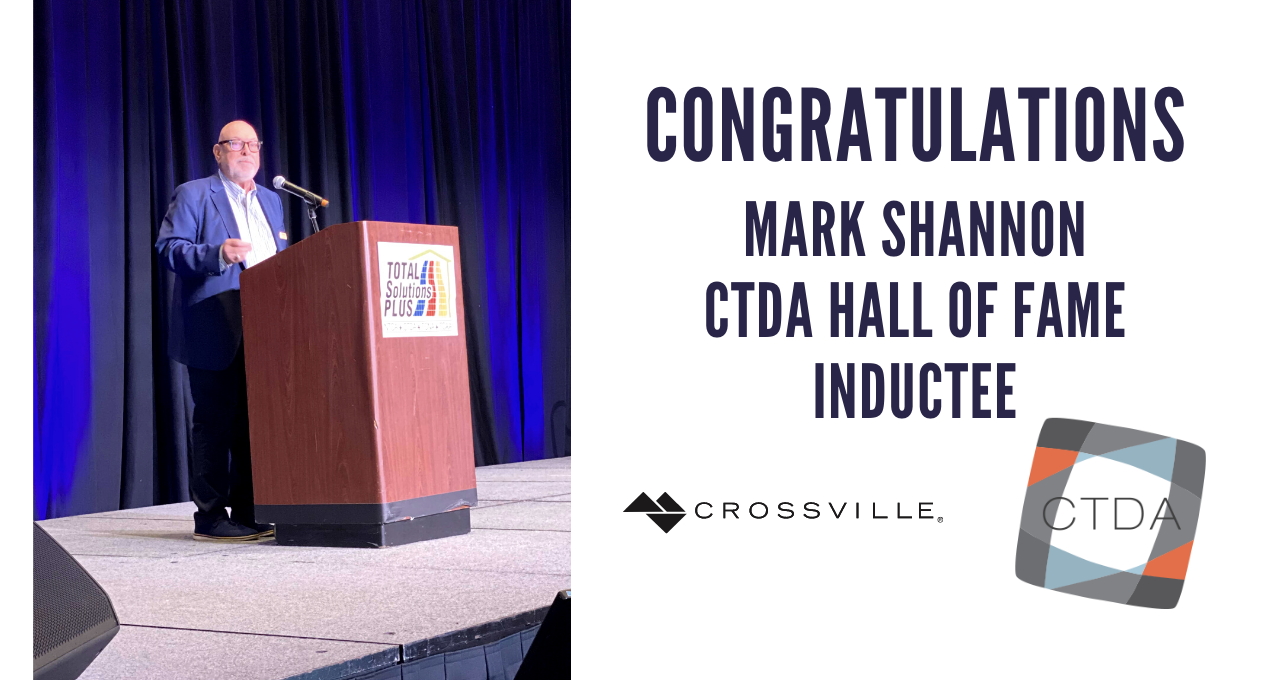Mark Shannon, Crossville’s Executive Vice President of Distribution Sales, was recently recognized as the 2021 Ceramic Tile Distributors Association Hall of Fame Honoree at the Total Solutions Plus Conference in Jacksonville, Florida. Honored for his 35-year career in the tile industry, Shannon will retire from working full time for Crossville at the end of this year.