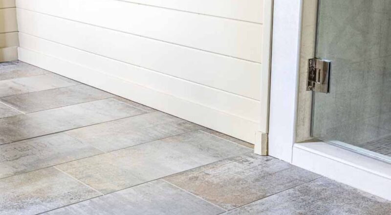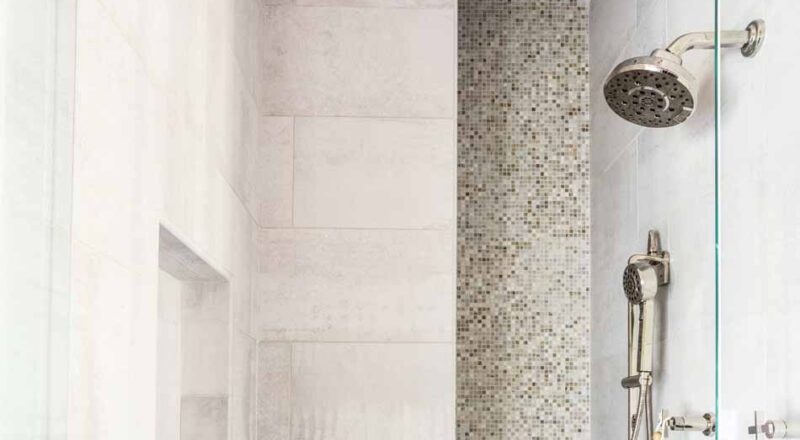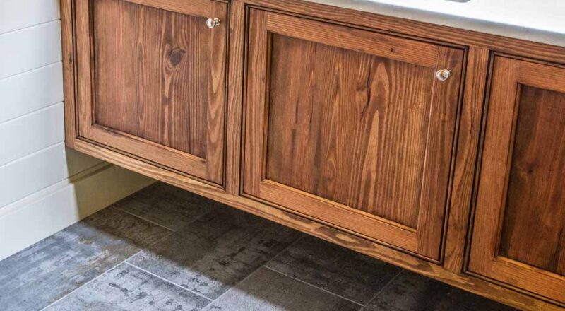 Mary Evelyn McKee designed the master bathroom beautifully mixing hard pine, rustic twine and our Altered State collection. For the floors, she chose the Steel Gaze hue picking up blue and gray tones and artfully mimicking oxidized steel to contrast the dark stain of the pine wood cabinetry. To help create a space that looks larger than the actual area, she installed White Hot in the 12” x 24” size in an offset pattern in the shower walls. Complementing the white wall tile, McKee selected one of our natural stone collections, Yin + Yang in Lotus Blossom for the shower bench, shower floor and ceiling offering natural variation in color, movement and texture.