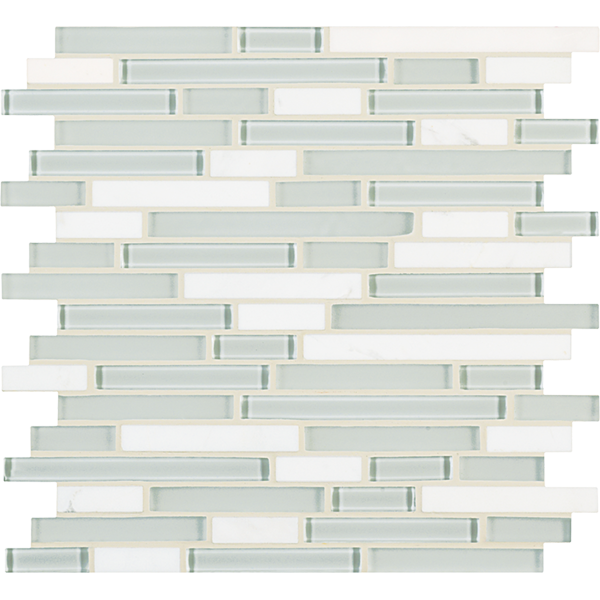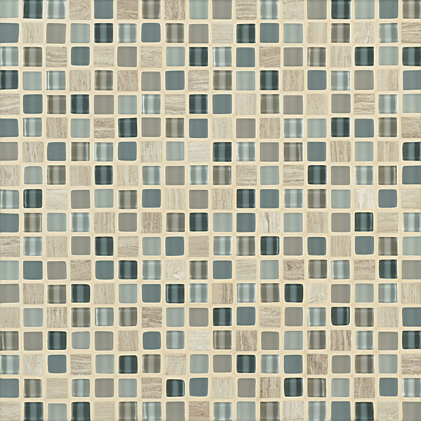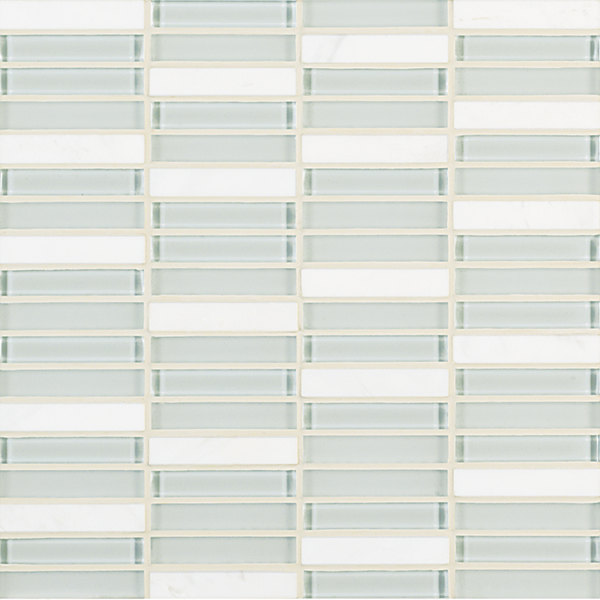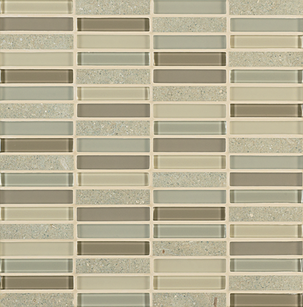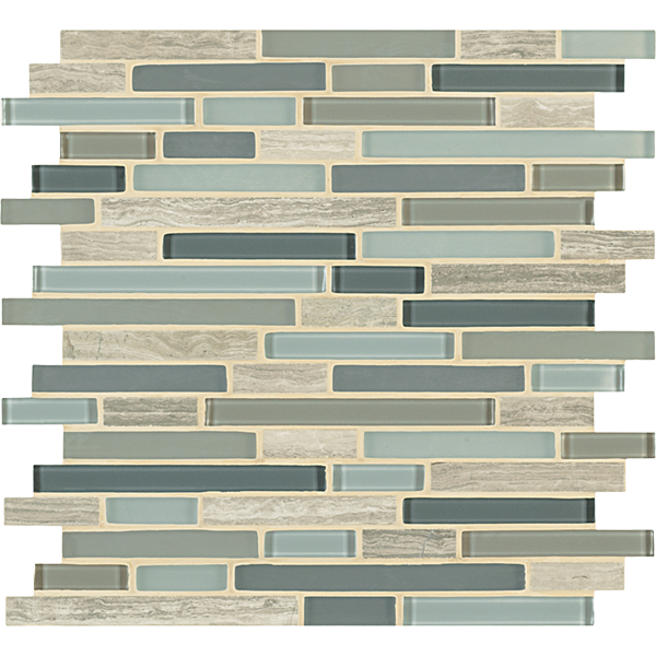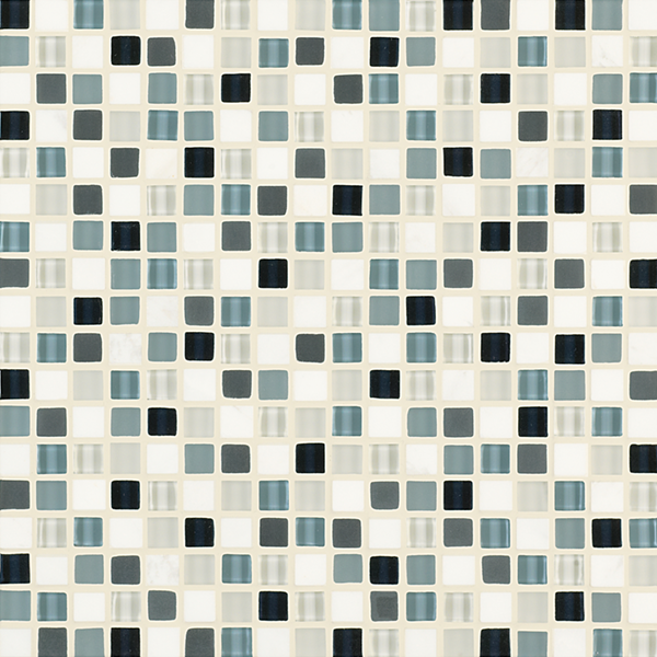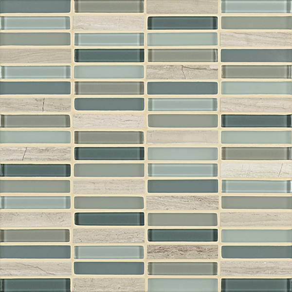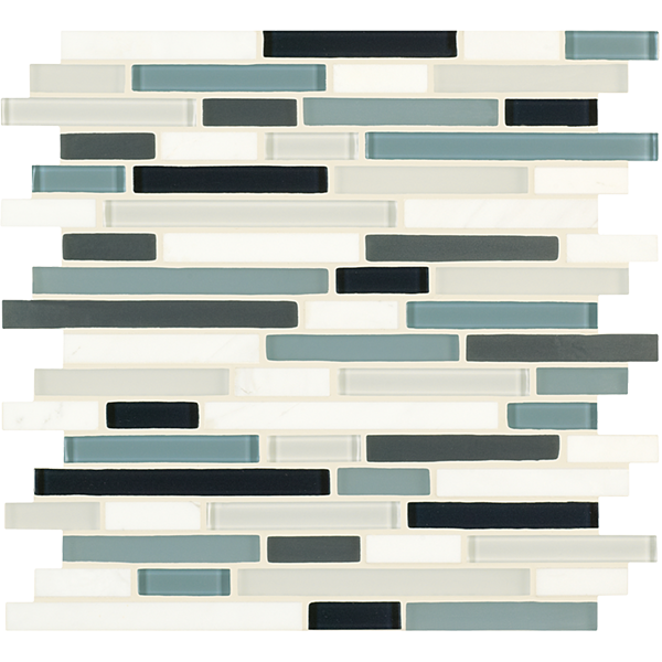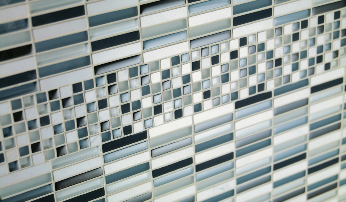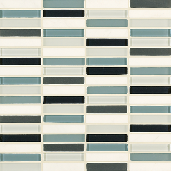 Inspired by the visual and structural harmony between stone and glass, Ebb & Flow mosaic wall tiles echo the complex rhythms of nature—and of life. The illusion of three-dimensional patterning rendered in a smooth, “tromp l’oeil” surface gives this unique tile blend added allure.