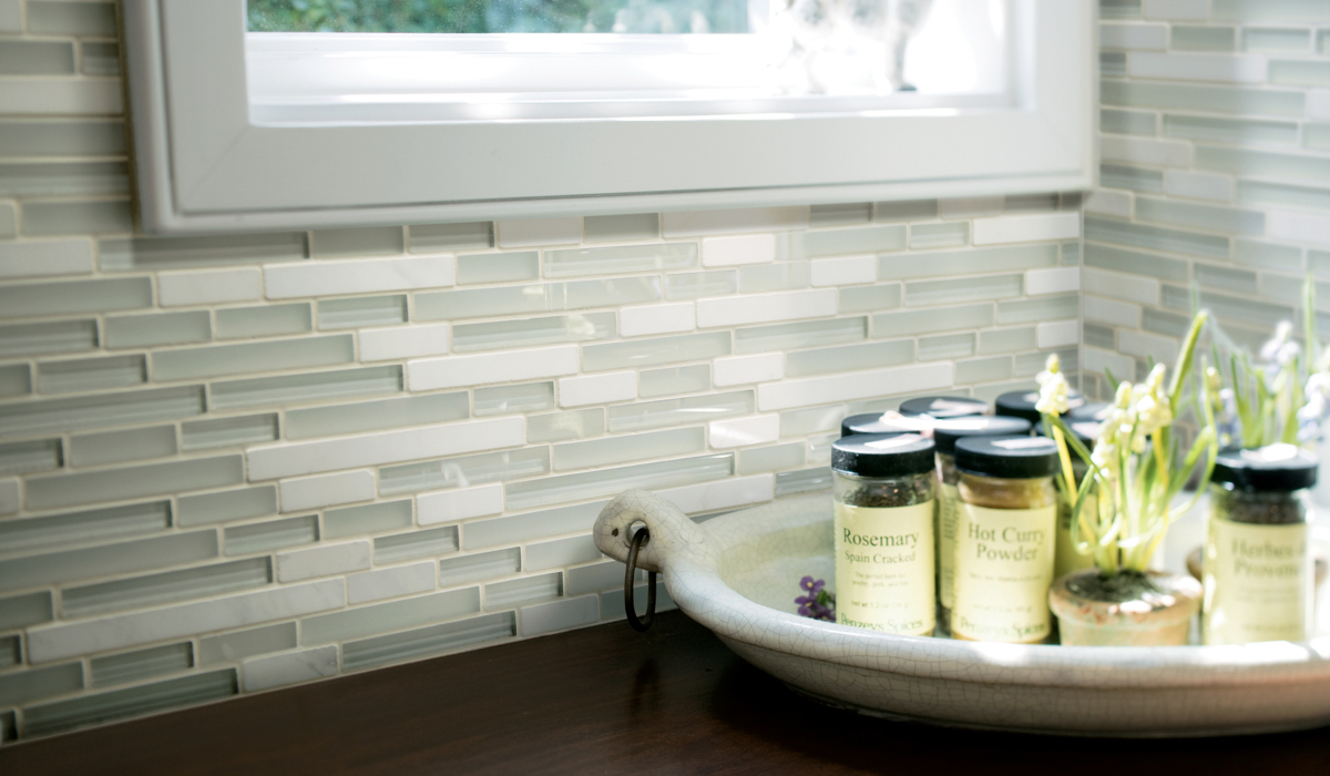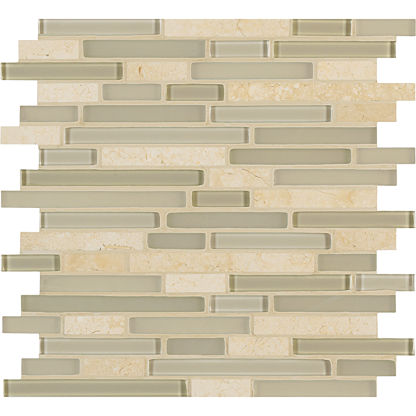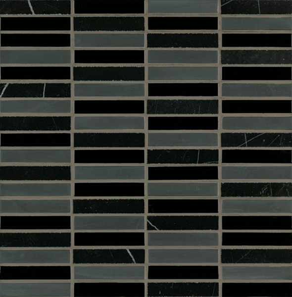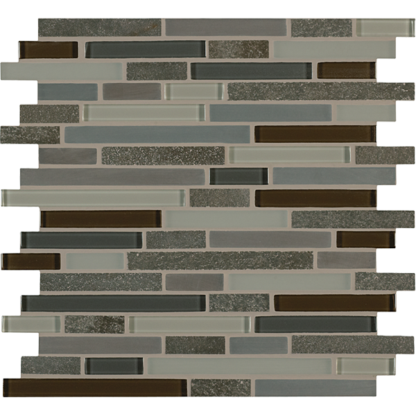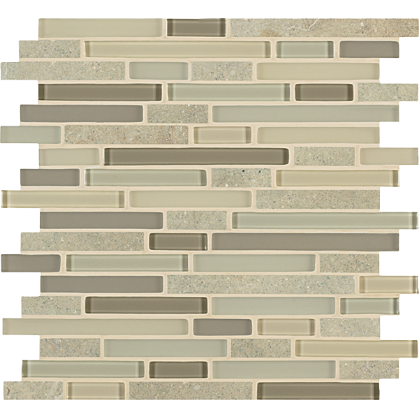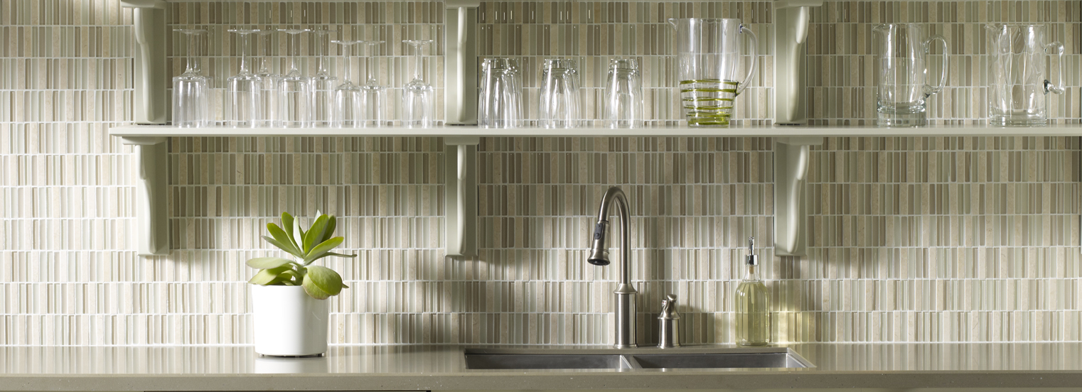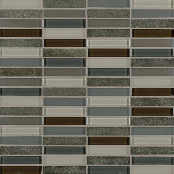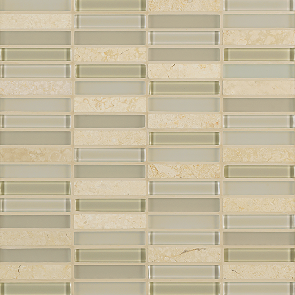 Inspired by the visual and structural harmony between stone and glass, Ebb & Flow mosaic wall tiles echo the complex rhythms of nature—and of life. The illusion of three-dimensional patterning rendered in a smooth, “tromp l’oeil” surface gives this unique tile blend added allure.