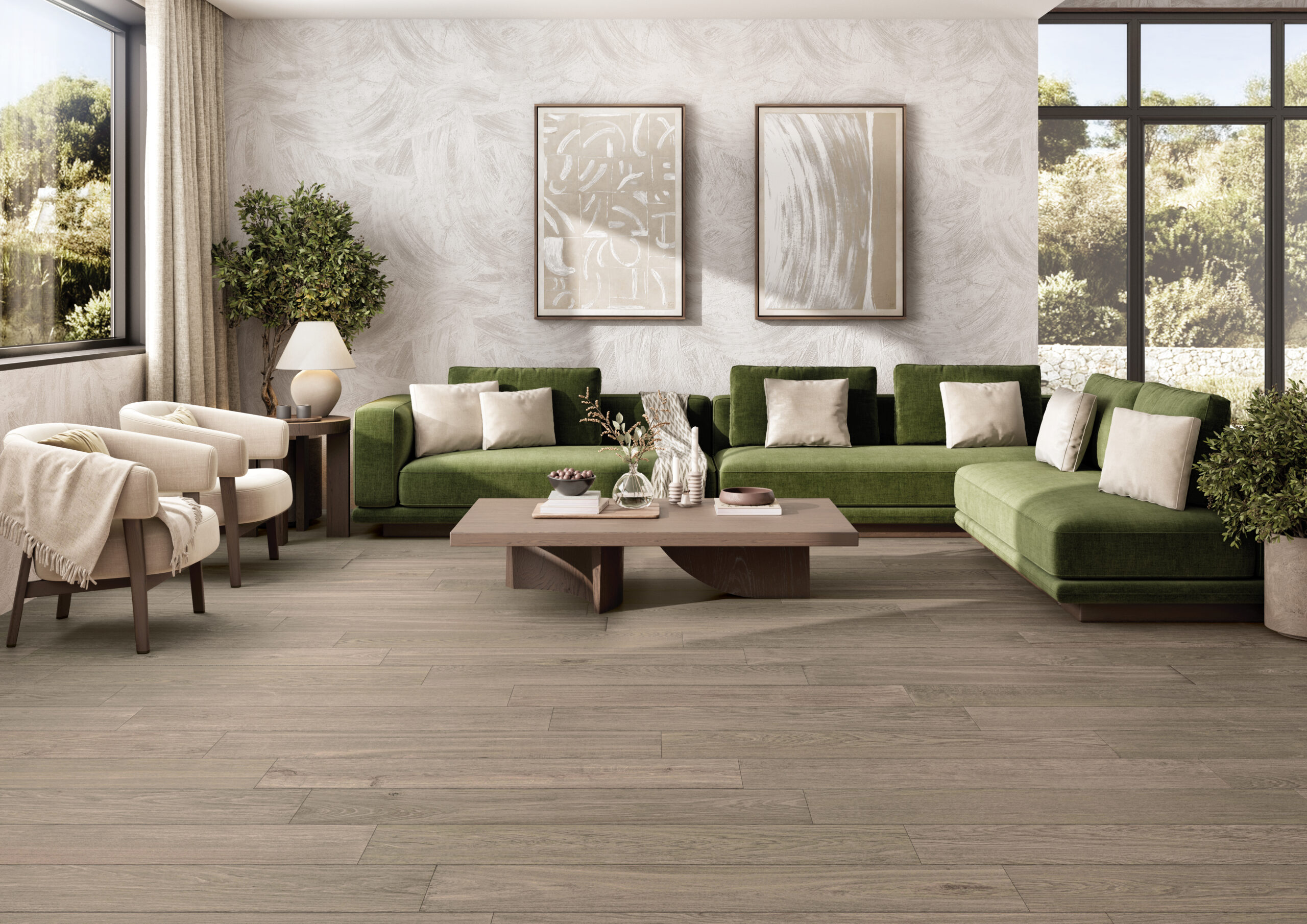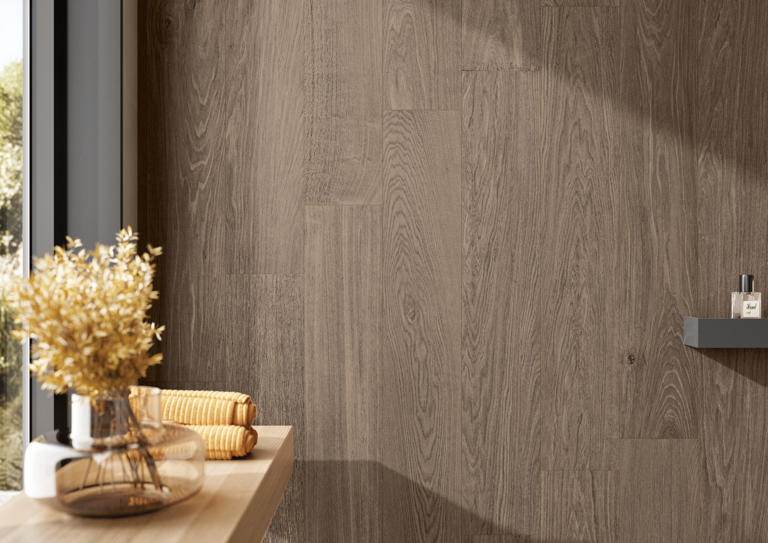 Inspired by the timeless allure of oak and enhanced with a subtle wood grain texture, this collection’s warm, earthy sophistication adds a calming sense of harmony and connection to any home.